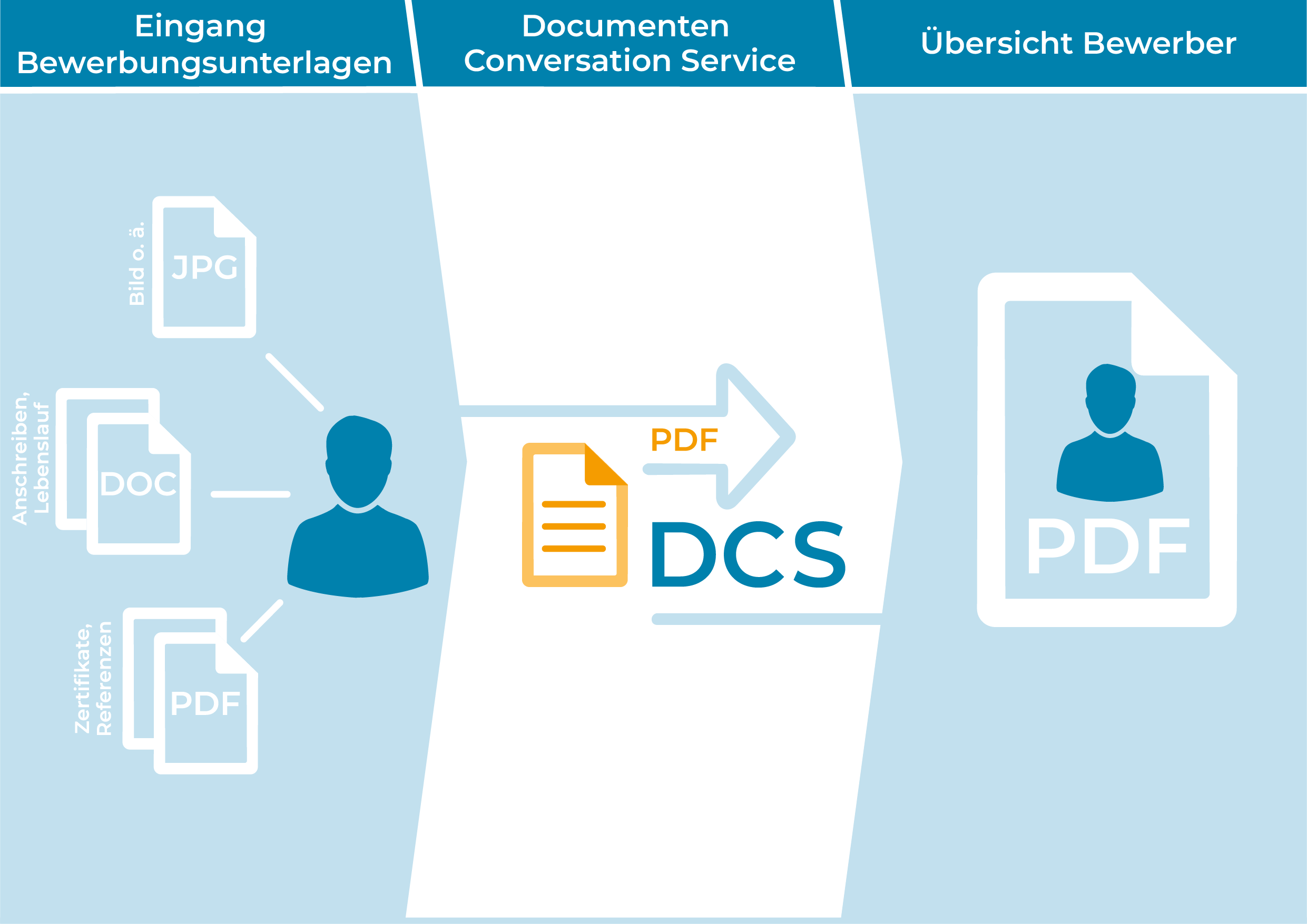 - Dokumenten-Merge mit PDF-Umwandlung: wertvoller Beitrag zum Datenschutz nach EU-DSGVO durch sichere Darstellung der Bewerbungsunterlagen.