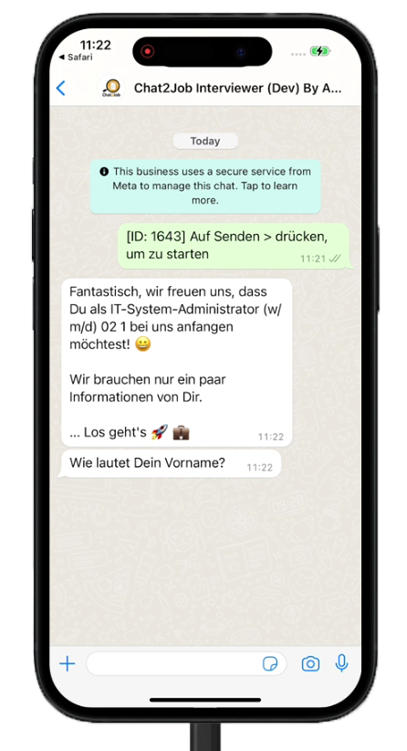 - Persönliche Atmosphäre: Die lockere Kommunikation über Messenger-Apps sorgt für ein freundlich-entspanntes Klima, wodurch Kandidatinnen und Kandidaten sich wohlfühlen und authentisch präsentieren können.